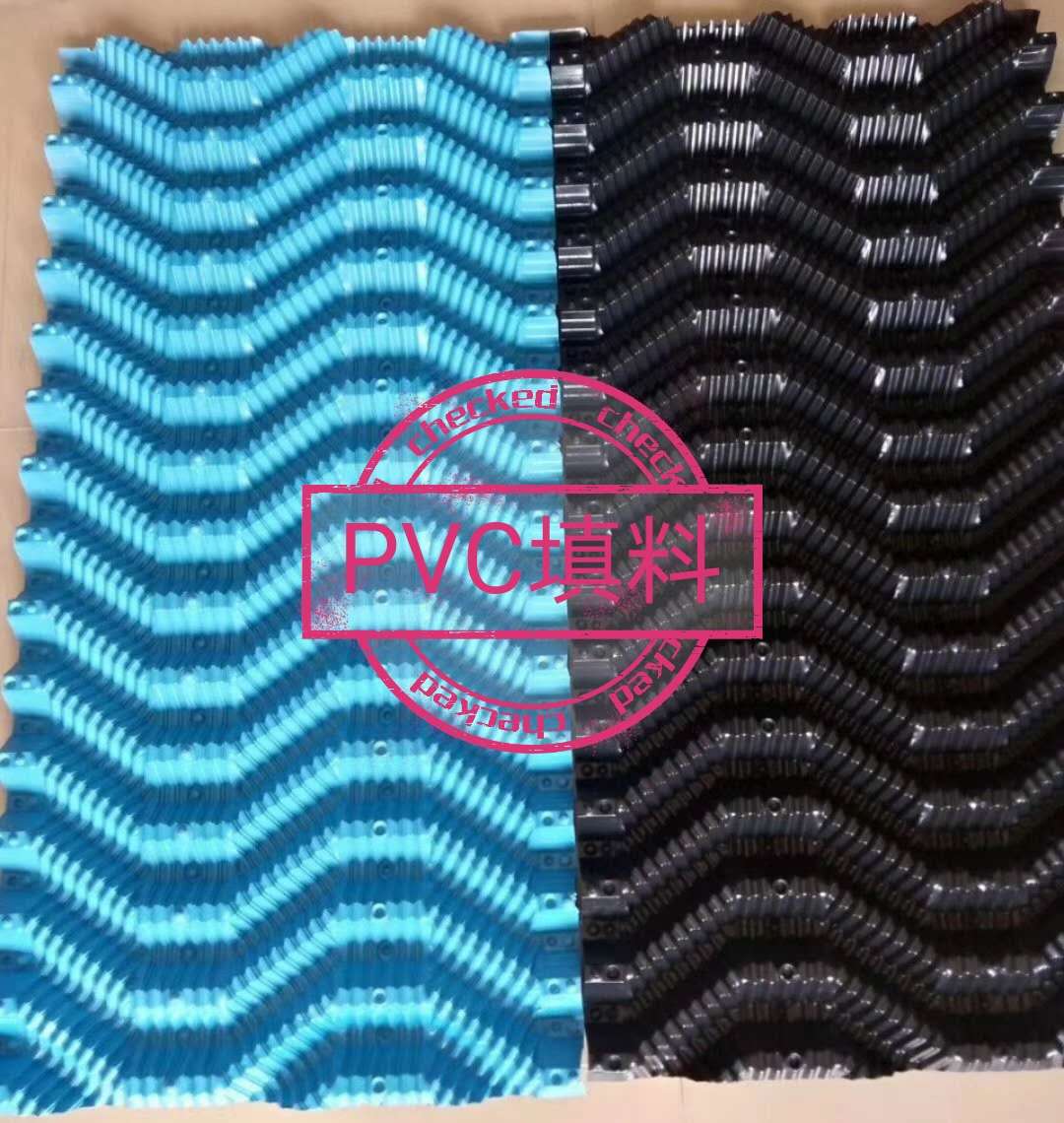 梯形冷却塔填料:台阶梯形斜波填料由水利电力科学研究院冷却水研究所设计,本填料片型横断面呈梯形斜波,提高了填料中的汽水挠动和减缓水膜下溅速度,在填料中延长了热交换时间,提高了散热性能。具有较好的综合性能。通道面积大,粘接牢固,整体组装钢度好,可广泛用于工业冷却塔,本厂目前生产聚氯乙烯(PVC),聚丙烯(PP)两种材质。